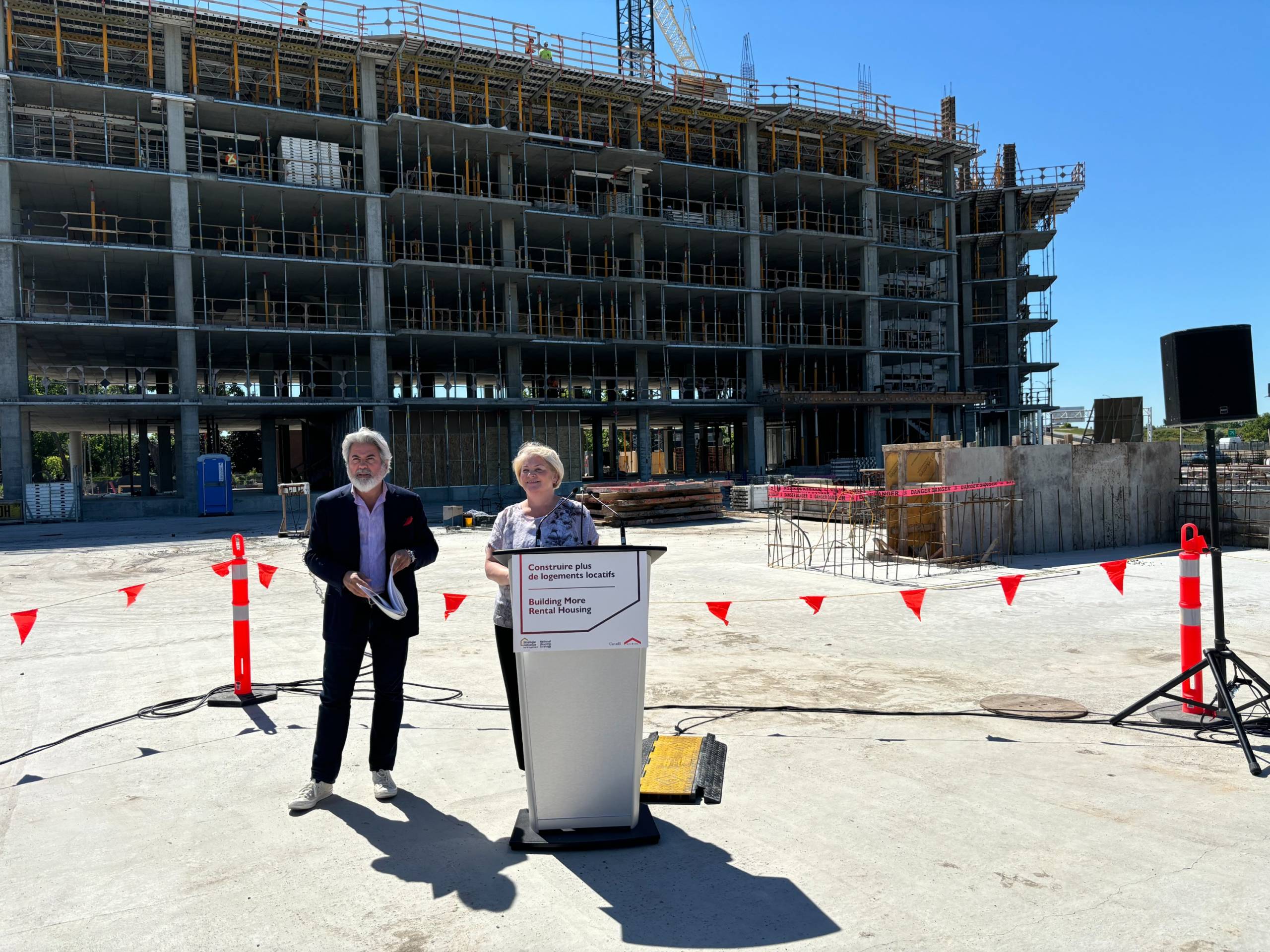 Pablo Rodriguez, alors ministre fédéral des Transports et lieutenant politique du Québec, devant le chantier de Taschereau sur le Parc. (Photo: Le Courrier du Sud ‒ Sylvain Daignault)