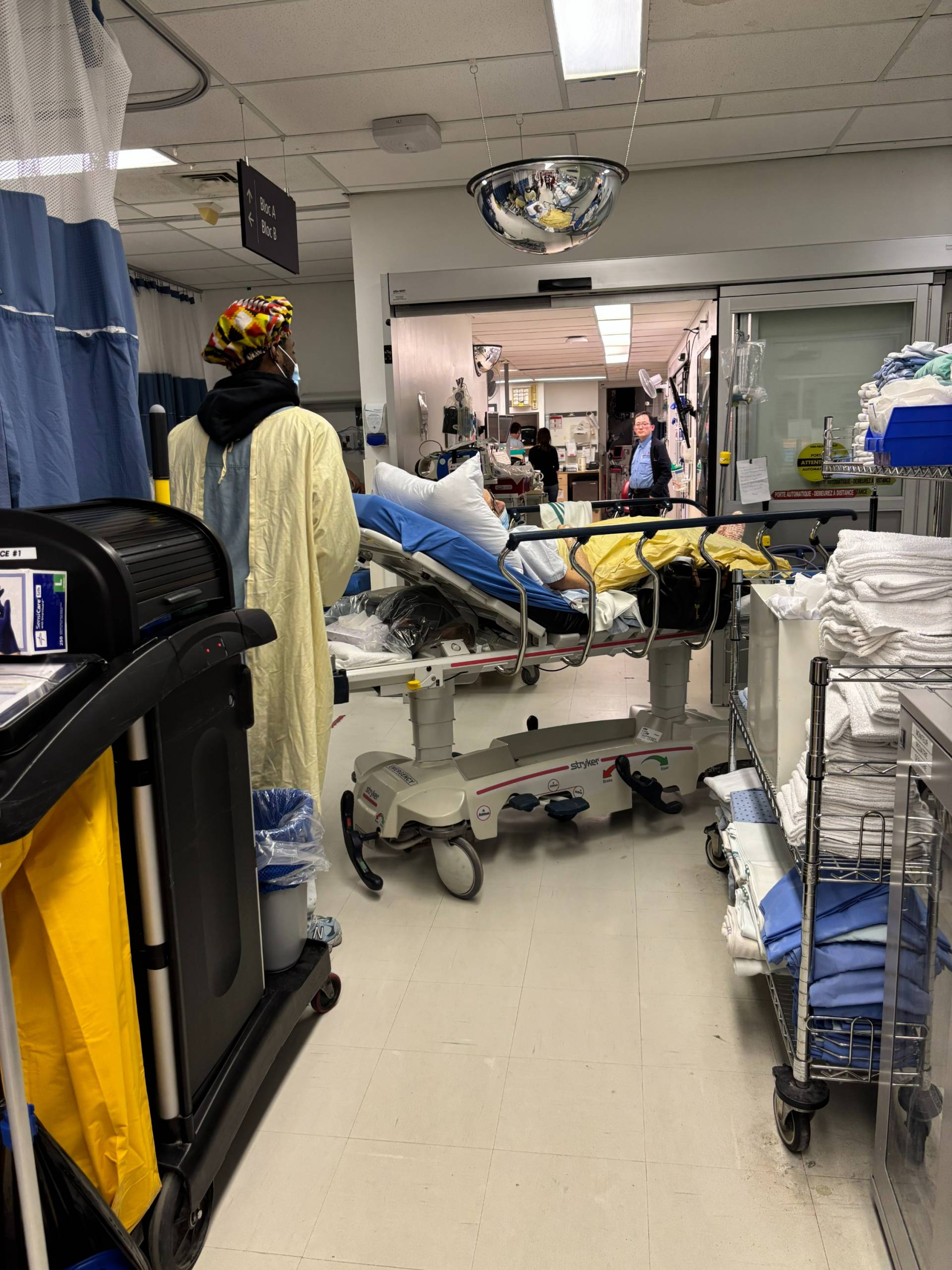 L’espace exigu a forcé l’hôpital à étendre l’unité d’urgence jusque dans les corridors, où l’absence de poste de garde central complique davantage le travail du personnel. Des postes de soins improvisés sont disséminés çà et là, obligeant les infirmières à se lever constamment pour laisser passer collègues et patients.
