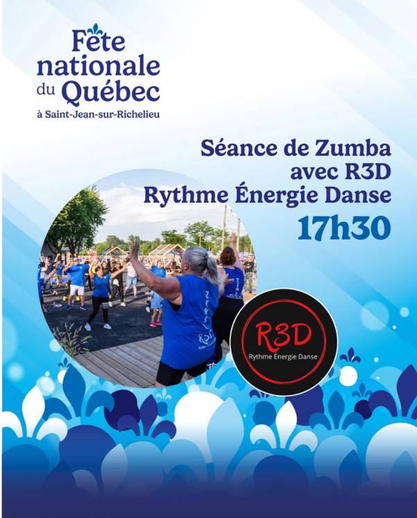 Envie de bouger ? À Saint-Jean-sur-Richelieu, le 23 juin, le parc Gerry-Boulet, accueillera dès 17 h 30 une séance gratuite de zumba menée par R3D Rythme Énergie Danse. Un bon moyen de lancer la fête avec énergie et sourire.