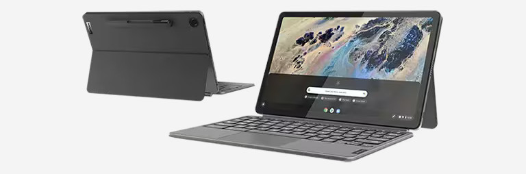 La tablette Lenovo Duet 3 vient combler les deux besoins alors qu’elle roule sur le système Chrome OS. On peut donc s’en servir autant comme tablette qu’un ordinateur portable!