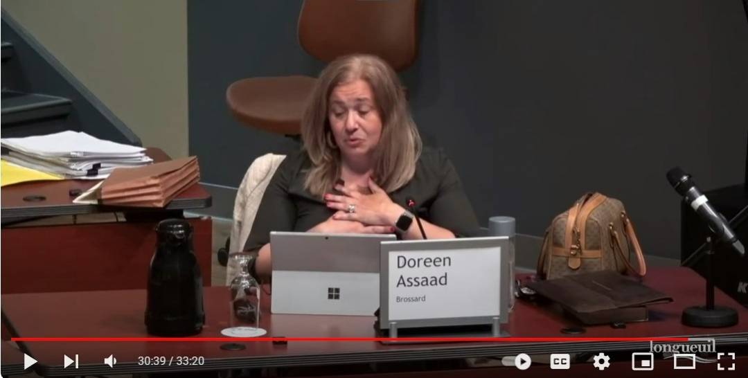 La mairesse de Brossard, Doreen Assaad, a chaudement remercié ses homologues lors de la dernière séance du conseil d’agglomération de Longueuil. (Photo: Le Courrier du Sud – Nom du photographe)