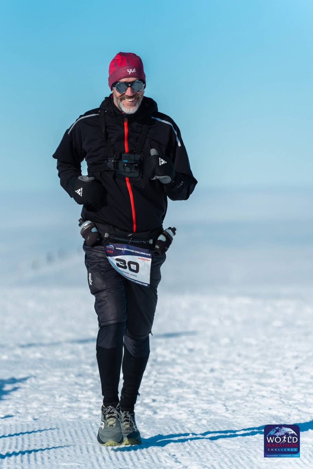 Ironiquement, c’est pour le marathon de l’Antarctique, dont le départ était donné à l’Ultima Base que Stéphane était le mieux adapté. «Au départ c’était à moins 5. C’est descendu à moins 10, mais j’arrivais du Québec et j’étais prêt. La surface était travaillée et il y avait une bonne adhérence, ça a bien été. Mais au Brésil cependant, pour l’avant-dernier, il faisait 36 degrés à Fortaleza, 40 avec l’humidex. Je devais mettre des glaçons dans ma casquette pour garder le cap», prétend le coureur qui évalue que les autres marathons ont bien été malgré le virus tenace.