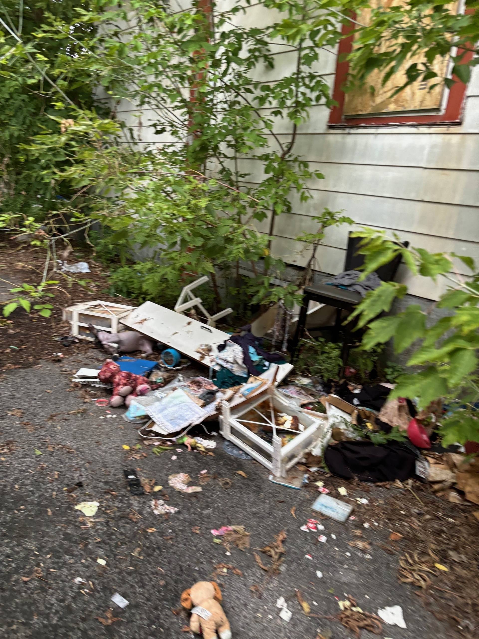 Le terme n’est pas exagéré : amoncellements de déchets, vieux vêtements, peluches, meubles brisés, oreillers souillés, résidus de vitre et même un tracteur jouet jonchent le sol.