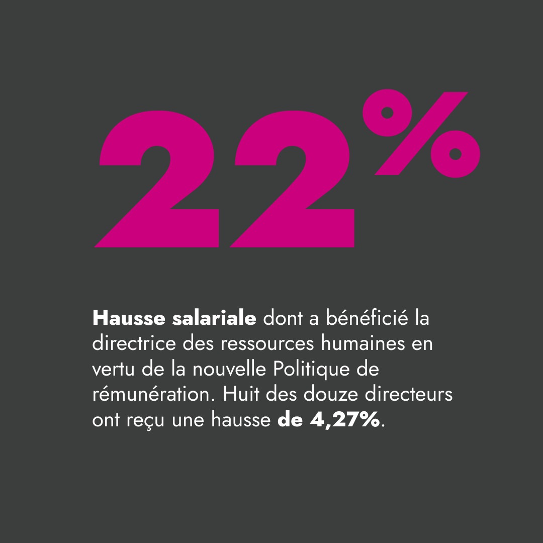 Ces augmentations salariales détonnent, alors que 8 des 12 directeurs ont reçu une augmentation de 4,27%.