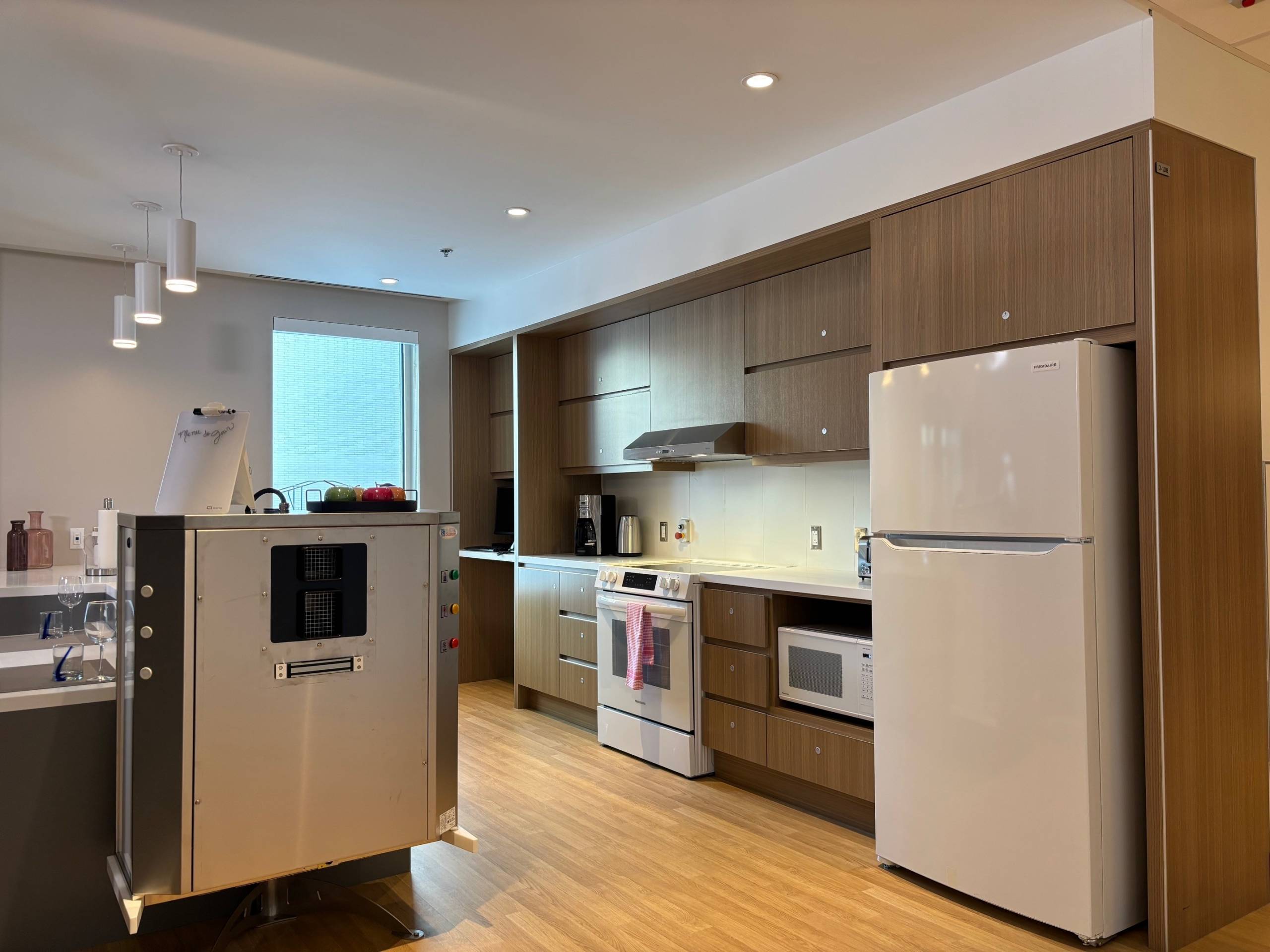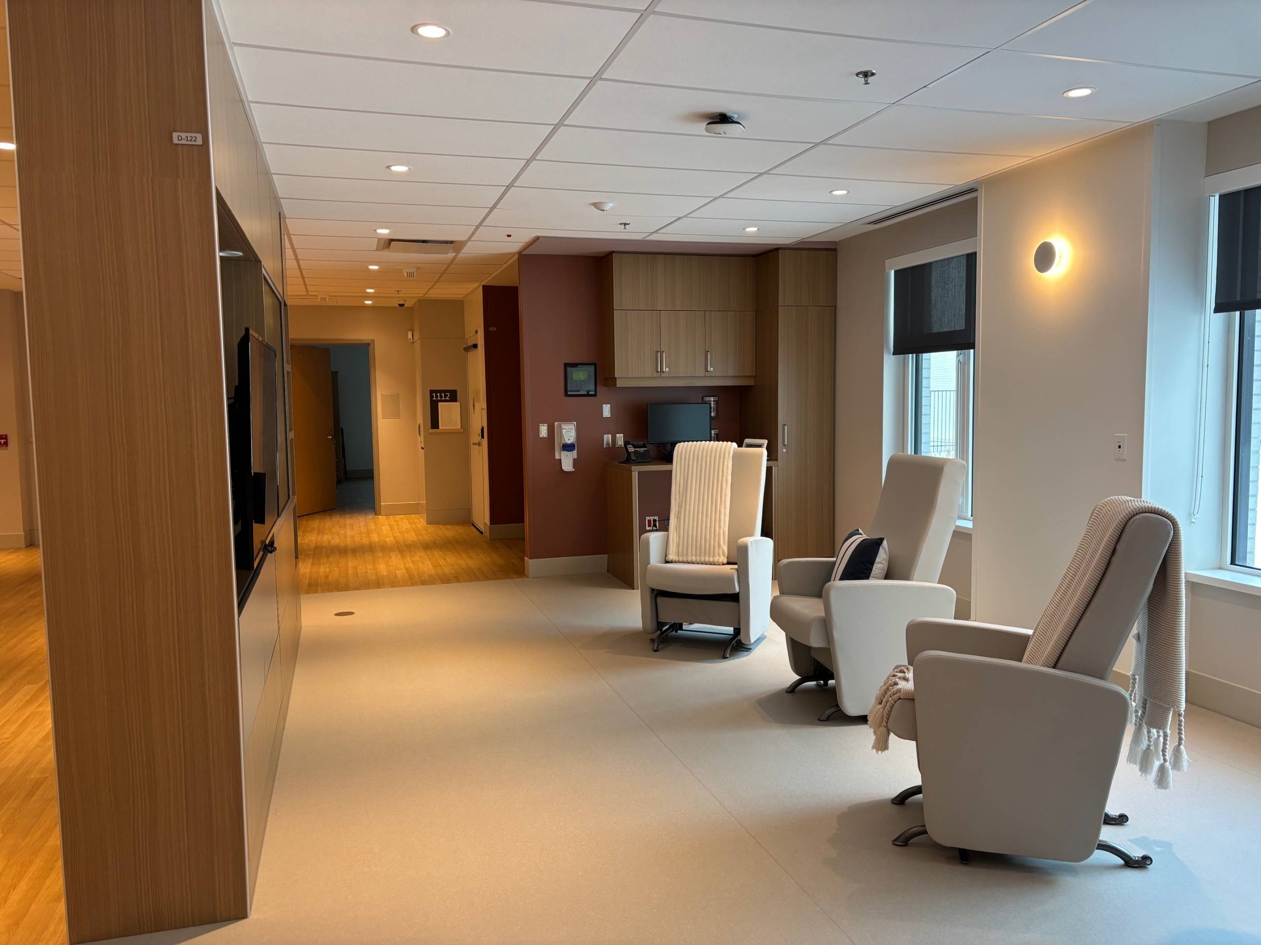 Le tout est divisé en six «maisonnées» lumineuses de douze chambres. Chacune de ces maisonnées représente le milieu de vie des résidents, avec un salon, un coin lecture, une salle à manger, une cuisine.