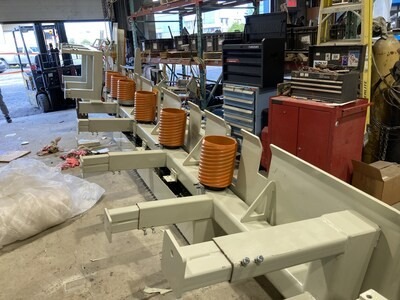 En préparant l’expédition d’une table d’alimentation pour planeur, le travailleur devait l’abaisser à son plus bas niveau à l’aide des pattes ajustables, afin qu’elle soit plus facile à déplacer et pour faciliter le transport par camion.