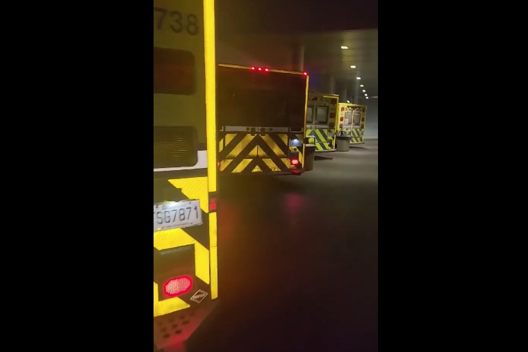 «11 ambulances stationnées et plusieurs équipes de paramedics, avec leurs patients, attendant à l’intérieur d’être triés ou transférés vers un lit disponible», dit le statut de la vidéo. Elle a été partagée plus de 1300 fois.