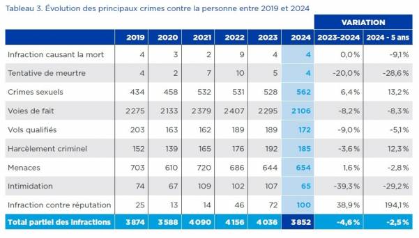 «Nous avons un statuquo cette année concernant les homicides. Nous en avons 4 cette année comparativement à 4 également en 2023. Toutefois, en date du 1er avril 2025, on compte déjà 5 homicides sur le territoire de l’agglomération de Longueuil», signale le directeur du SPAL Patrick Bélanger.
