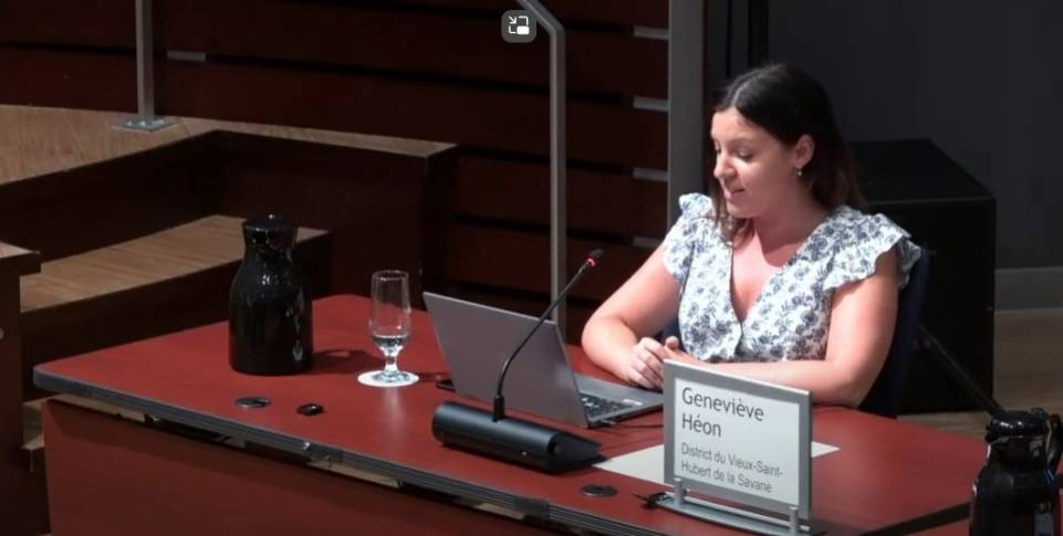 La conseillère Geneviève Héon (arr. de Saint-Hubert). (Photo : page YouTube de la Ville de Longueuil)