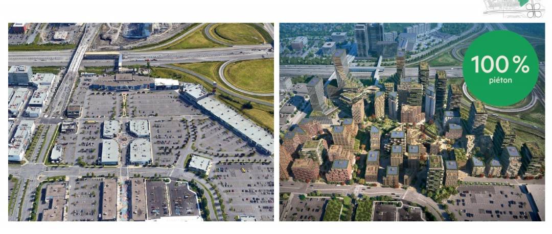 À terme, des tours résidentielles et un secteur 100% piéton remplaceront le Cineplex Odeon, les commerces bordant l’avenue des Lumières entre le boul. Leduc et la rue de la Lune, ainsi que les commerces longeant l’autoroute 30 dans cette zone du Quartier DIX30, tels que le Oasis Surf, le Dollarama et le Structube.