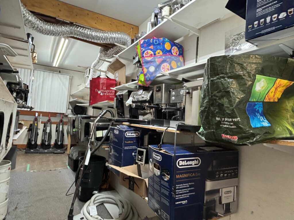 Lors du passage du journal, les tablettes qui accueillent les articles en réparation dans l’arrière-boutique sont essentiellement remplies de machines à café, puis de quelques micro-ondes.